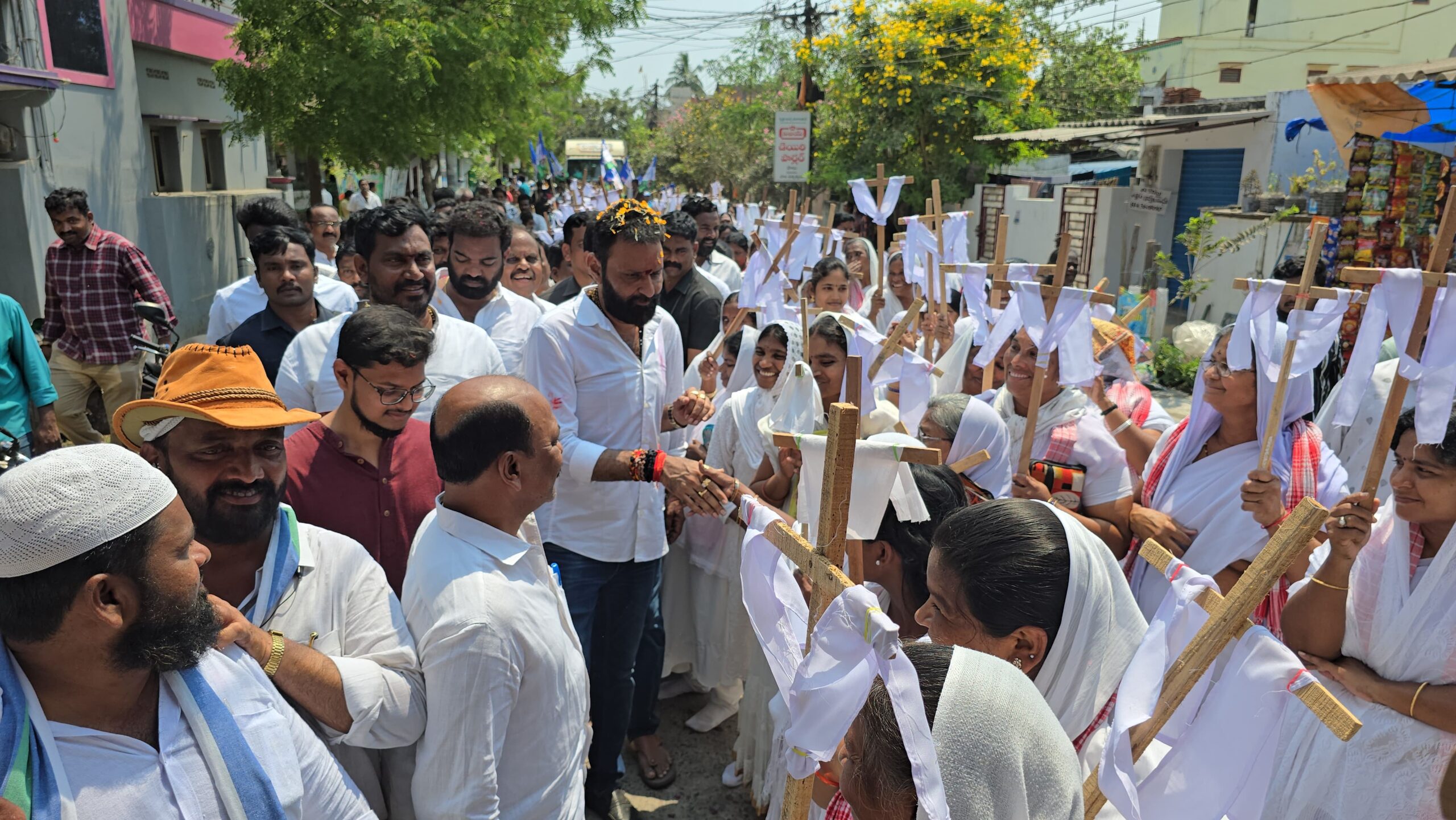 కల్వరి సన్నిధి మినిస్ట్రీస్ ఆధ్వర్యంలో గుడివాడ పట్టణంలో నిర్వహించిన గుడ్ ఫ్రైడే శాంతి ర్యాలీలో ఎమ్మెల్యే కొడాలి నాని పాల్గొన్నారు. ఈ సందర్భంగా దైవ సేవకుల నుండి ఎమ్మెల్యే నాని ఆశీస్సులు తీసుకున్నారు. అనంతరం ఎమ్మెల్యే కొడాలి నాని మాట్లాడుతూ మానవాళి కోసం కరుణామయుని మహాత్యాగమే గుడ్ ఫ్రైడే.. జీసస్ జీవితమే మానవాళికి గొప్ప సందేశం’ అని ఎమ్మెల్యే కొడాలి నాని అన్నారు.”ఏసు ప్రభువును శిలువ వేసిన గుడ్ ఫ్రైడే రోజు. ఆ తరువాత ఆయన పునరుజ్జీవించిన ఈస్టర్ సండే రోజు.. ఈ రెండూ మానవాళి చరిత్రను మలుపులు తిప్పిన ఘట్టాలు” అని ఎమ్మెల్యే నాని పేర్కొన్నారు.