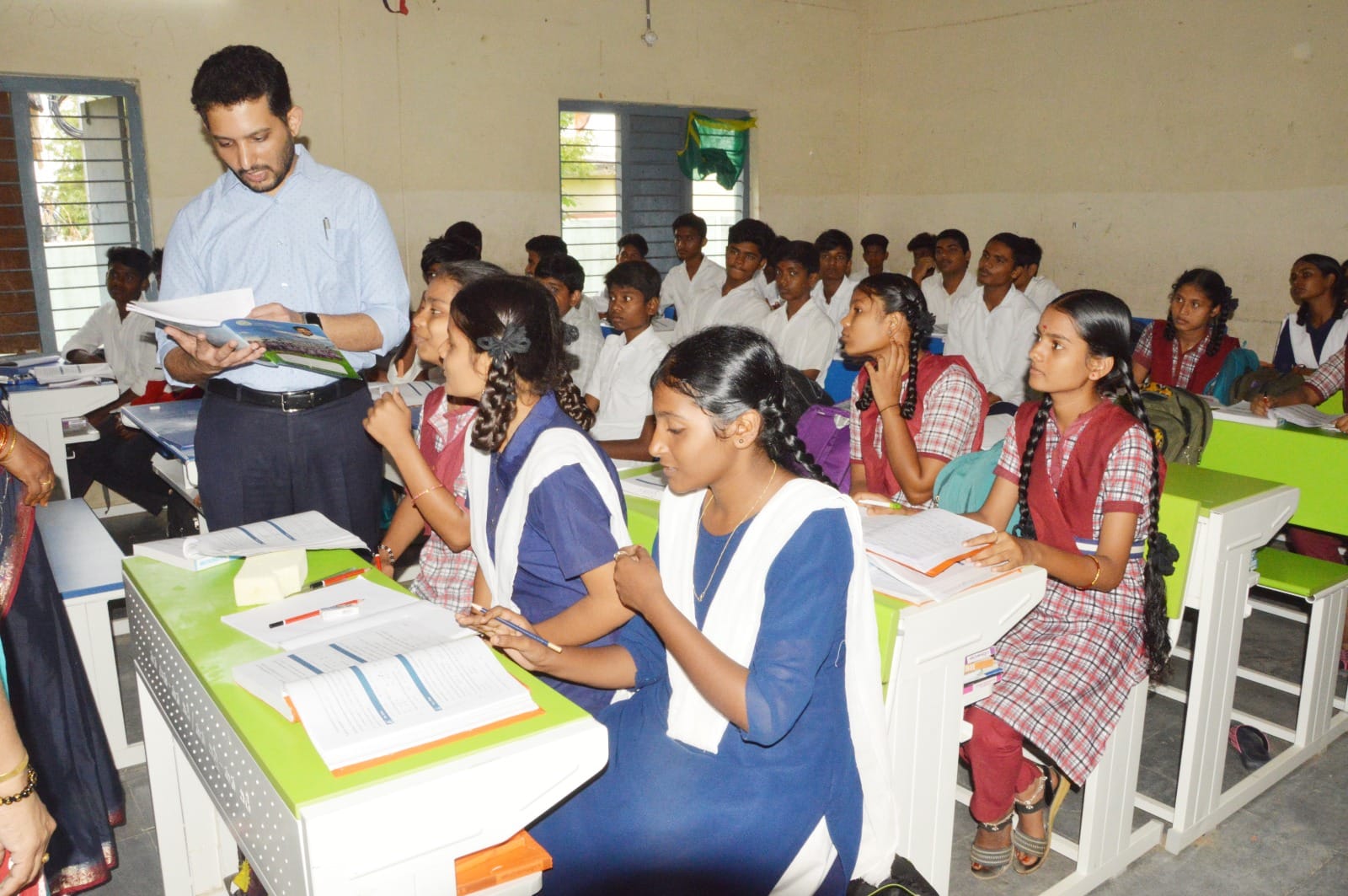 అనంతరం జవహర్ నగర్ లో ఉన్న ప్రభుత్వ జిల్లా పరిషత్ ఉన్నత పాఠశాల తనిఖీ చేశారు. అమ్మ ఆదర్శ పాఠశాల కమిటీ ద్వారా చేపడుతున్న నిర్మాణం పనులను అడిగి తెలుసుకున్నారు.10వ తరగతి చదువుకునే విద్యార్థిని విద్యార్థులతో కలెక్టర్ ముచ్చటించారు. టెస్ట్ బుక్స్, నోట్ బుక్స్ ఇవ్వడం జరిగిందా అని అడిగి తెలుసుకున్నారు. విద్యార్థులను ఏఏ ఆటలంటే ఇష్టమని అడిగారు, విద్యార్థులు క్రికెట్ కబడ్డీ వాలీబాల్ అంటే ఇష్టమని కలెక్టర్కు తెలియజేశారు. విద్యార్థినీ విద్యార్థులకు మంచి చదువులు చదువుకొని తల్లిదండ్రులకు మంచి పేరు తీసుకొని రావాలని పిల్లలకు హితబోధ చేశారు. డిజిటల్ బోర్డు ద్వారా విద్యా బోధన జరుగుతుందని ఉపాధ్యాయులు కలెక్టర్ కు వివరించారు. ప్రభుత్వ పాఠశాలలో చదువుకునే విద్యార్థిని విద్యార్థులకు ఆహ్లాదకరమైన వాతావరణంలో విద్యా బోధనలు అందించాలని ఉపాధ్యాయులను కోరారు. పాఠశాలల్లో డైనింగ్ హాల్ , త్రాగునీరు, వాష్ ఏరియా, లాంటి మౌలిక సదుపాయాలు అందుబాటులో ఉండేలా చూడాలని సంబంధిత అధికారులకు సూచించారు.