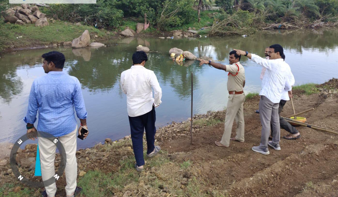 వినాయక నిమజ్జనానికి ప్రదేశాన్ని పరిశీలించిన మండల అధికారులు