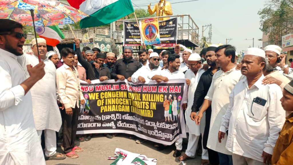 జనసముద్రం న్యూస్ ఘట్కేసర్ మున్సిపల్ పరిధిలోని జామియా మజీద్ ముస్లింలు జుమ్మా నమాజ్ తర్వాత భారీ ఎత్తున ఉగ్రవాద పాకిస్తాన్ కు వ్యతిరేకంగా పాకిస్తాన్ ముర్దాబాద్,అంటూ భారీ నినాదాలతో భారీ ఎత్తున నిరసన ర్యాలీ నిర్వహించడం జరిగింది.ఈ కార్యక్రమంలో మహమ్మద్ అబ్దుల్ ఖయ్యుం మాట్లాడుతూ పహల్గాంలో అమాయక పర్యాటకులను కాల్చడాన్ని ఒక పిరికిపంద ప్రయత్నం చర్యాని దమ్ముంటే పాకిస్తాన్ ని యుద్ధానికి సిద్ధం కావాలని 140 కోట్ల భారతీయులు వేచి చూస్తున్నారని,భారత దేశ ప్రధానమంత్రి నరేంద్ర మోడీ వెనకాల ఉన్నామని ఏ నిర్ణయం తీసుకున్న దానికి మేమందరము కట్టుబడి ఉంటామని,ఇటువంటి దుశ్చర్యకు పాల్పడిన ఉగ్రవాద పాకిస్తాన్ ను తుదముట్టించాలని ఉగ్రవాదాన్ని పెంచి పోషిస్తున్న పాకిస్తాన్ ని నామరూపాలు లేకుండా చేయాలని తెలియజేయడం జరిగింది.మరియు పహల్గాంలోని మృతులకు అశ్రునివాళి అర్పించడం జరిగింది.మరియు వారి యొక్క కుటుంబాలకు ప్రగాఢ సానుభూతి తెలియజేయడం జరిగింది.ఈ కార్యక్రమంలో పాషా,ఖుర్షిద్,అన్ను,రఫీయోద్దీన్,షారుక్,జావీద్,అక్బర్,ఖలీల్,రెహమాన్,సోఫియాన్,ఫయీమ్,ఖమర్,సలీం తదితరులు భారీ ఎత్తున పాల్గొని నిరసన తెలియజేయడం జరిగింది.